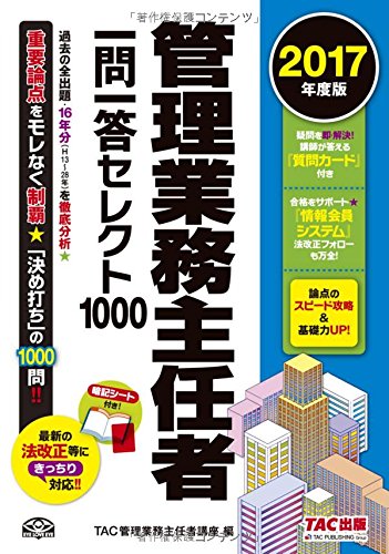 管理業務主任者一問一答セレクト1000(2017年度版) ~ 管理業務主任者一問一答セレクト1000(2017年度版) TAC株式会社 本の購入は楽天ブックスで。全品送料無料!購入毎に「楽天スーパーポイント」が貯まってお得!みんなのレビュー・感想も満載。